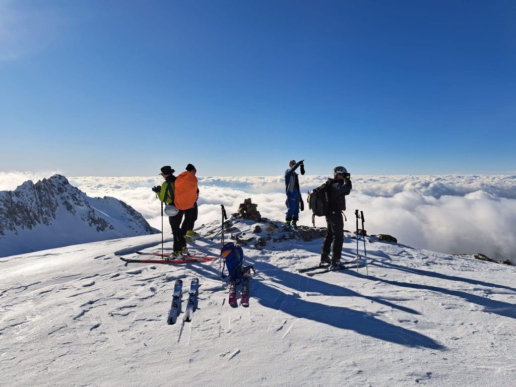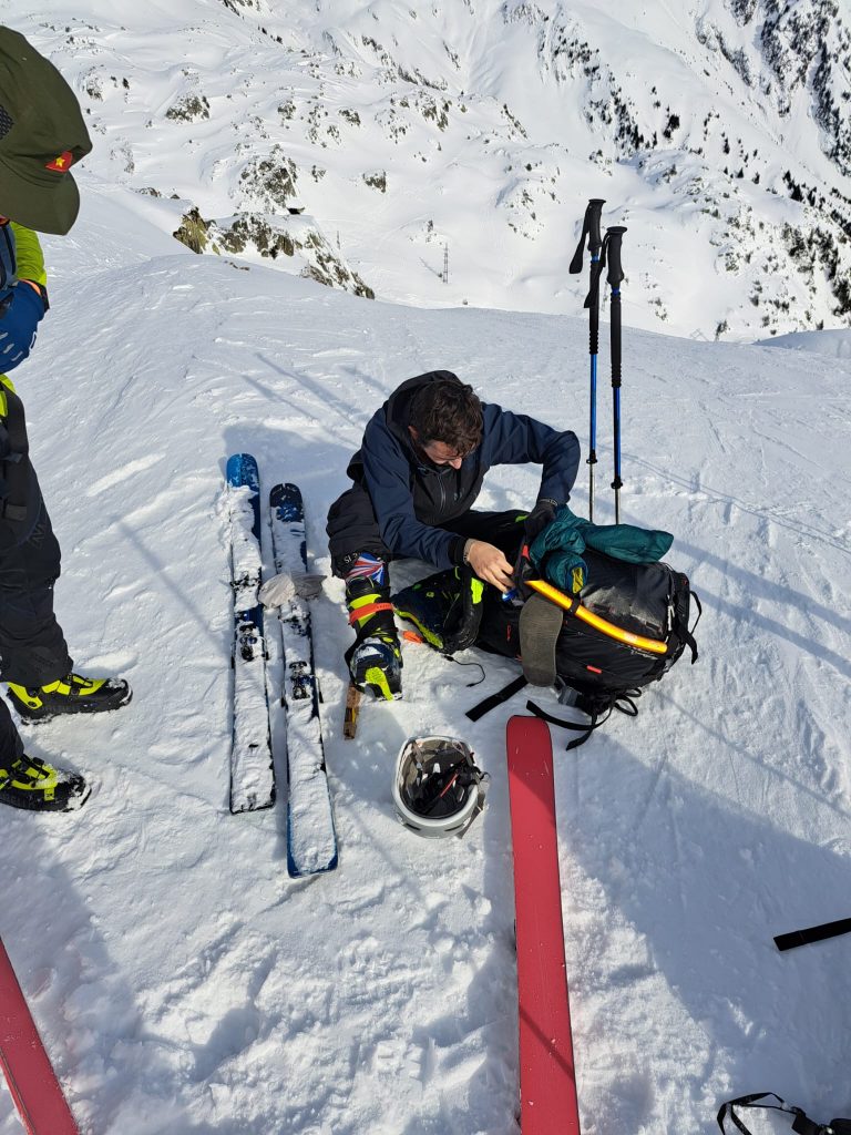 A la montée, je perds mes 2 skis que j’avais oublié de passer en mode montée. L’un d’eux percute un rocher, ce qui abîme un peu l’avant mais sans que ce soit embêtant pour la suite. Vivien descend de quelques mètres pour les récupérer. J’ai l’impression d’être un touriste.